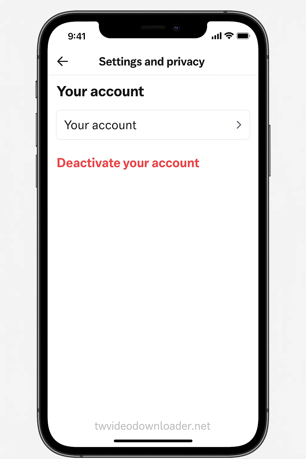 Under the Settings and Privacy option, click on Your Account. You should see the option that says “Deactivate your account”, click on it.